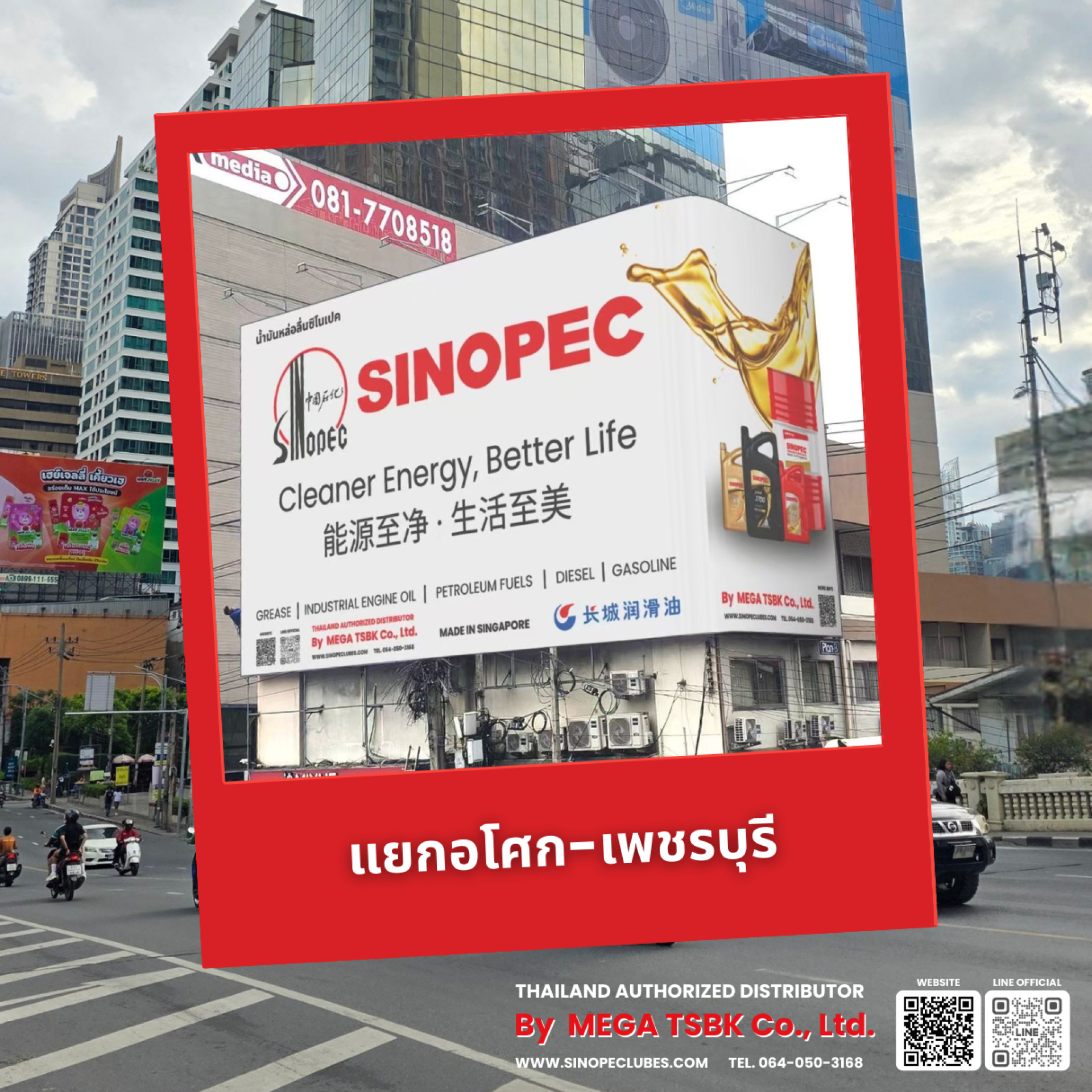 MEGA TSBK Co., Ltd. ในฐานะตัวแทนนำเข้าน้ำมันหล่อลื่น SINOPEC อย่างเป็นทางการในประเทศไทย ได้ตอกย้ำความแข็งแกร่งของแบรนด์ผ่านการขึ้นบิลบอร์ดขนาดใหญ่กลางเมือง ณ แยกอโศก-เพชรบุรี จุดตัดที่มีปริมาณรถผ่านมากกว่าแสนคันต่อวัน